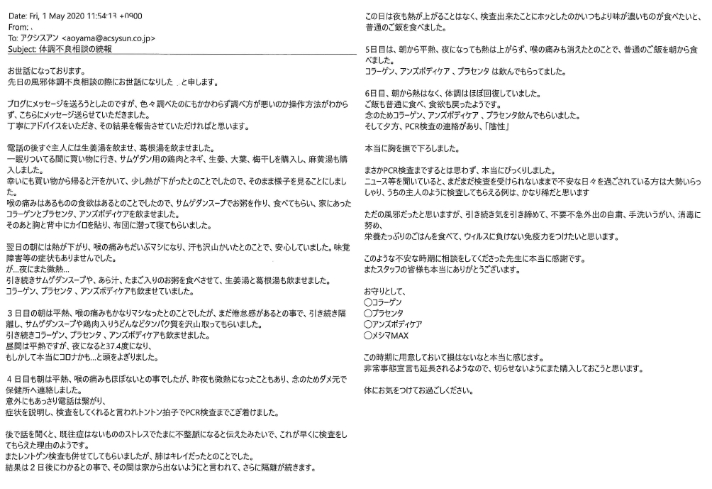 メールのスキャン画像を掲載するのでご覧ください。最後に解説文入れますね。
